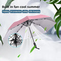 The umbrella features a built-in fan that circulates air to keep you cool, while the mist function adds a refreshing feeling, reducing temperatures by 8-10°C on sunny days – perfect for hot summer days